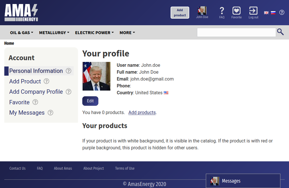 Add a product - in this section You can add your products (products, services, developments, etc.) to our catalog. You can read more about the product placement procedure