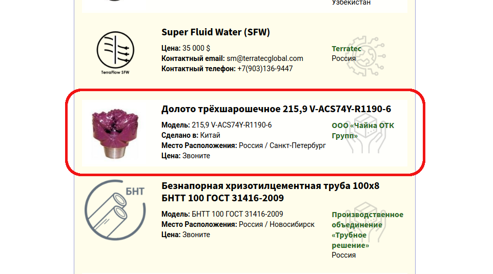 В правой части карточки находятся краткие данные про компанию, которая предлагает данный товар/услугу: