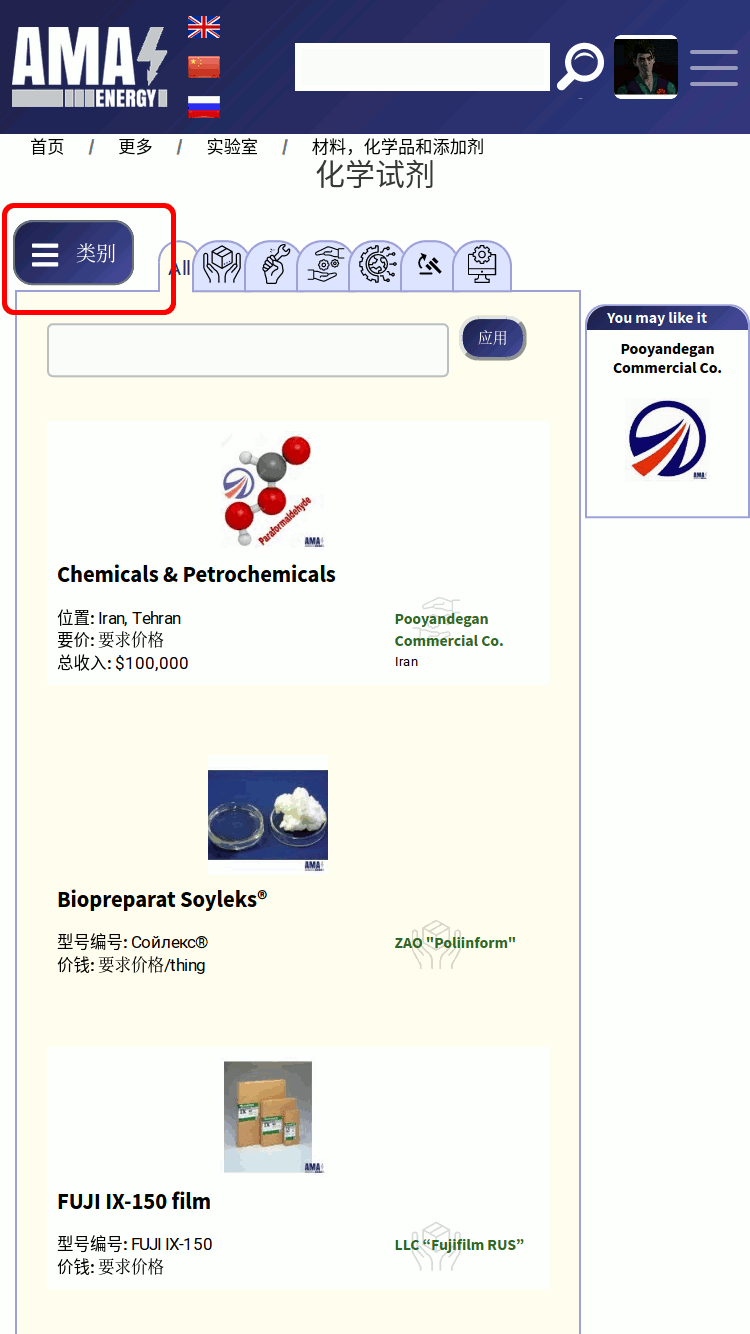 在移动版本中,设计略有不同。 你需要点击打开菜单按钮,然后你会看到一个行业列表。 当您点击行业部分时,您将看到部门列表: